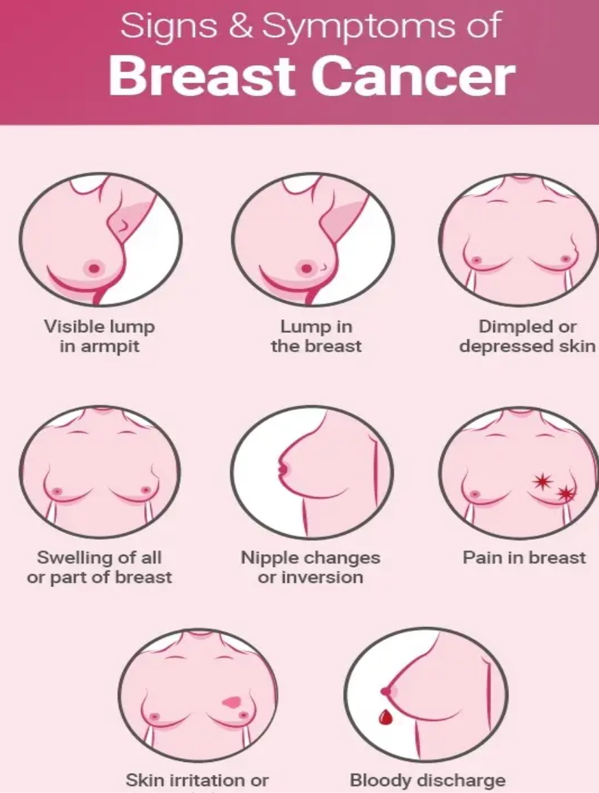 - Breast self-awareness – knowing how your breasts normally look and feel